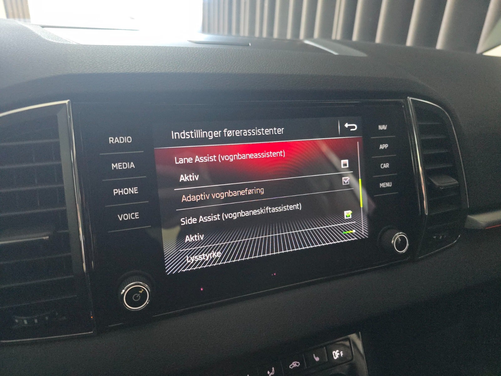 â Assistentpakke: Blindvinkelassistent, TrĂŠthedsregistrering, Skiltegenkendelse, Vognbaneassistent og Automatisk NĂždbremsesystem